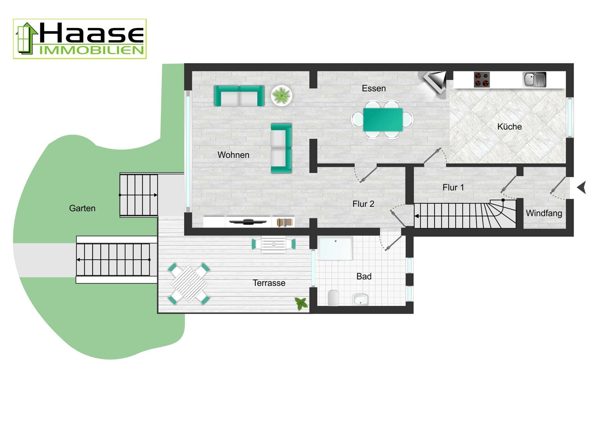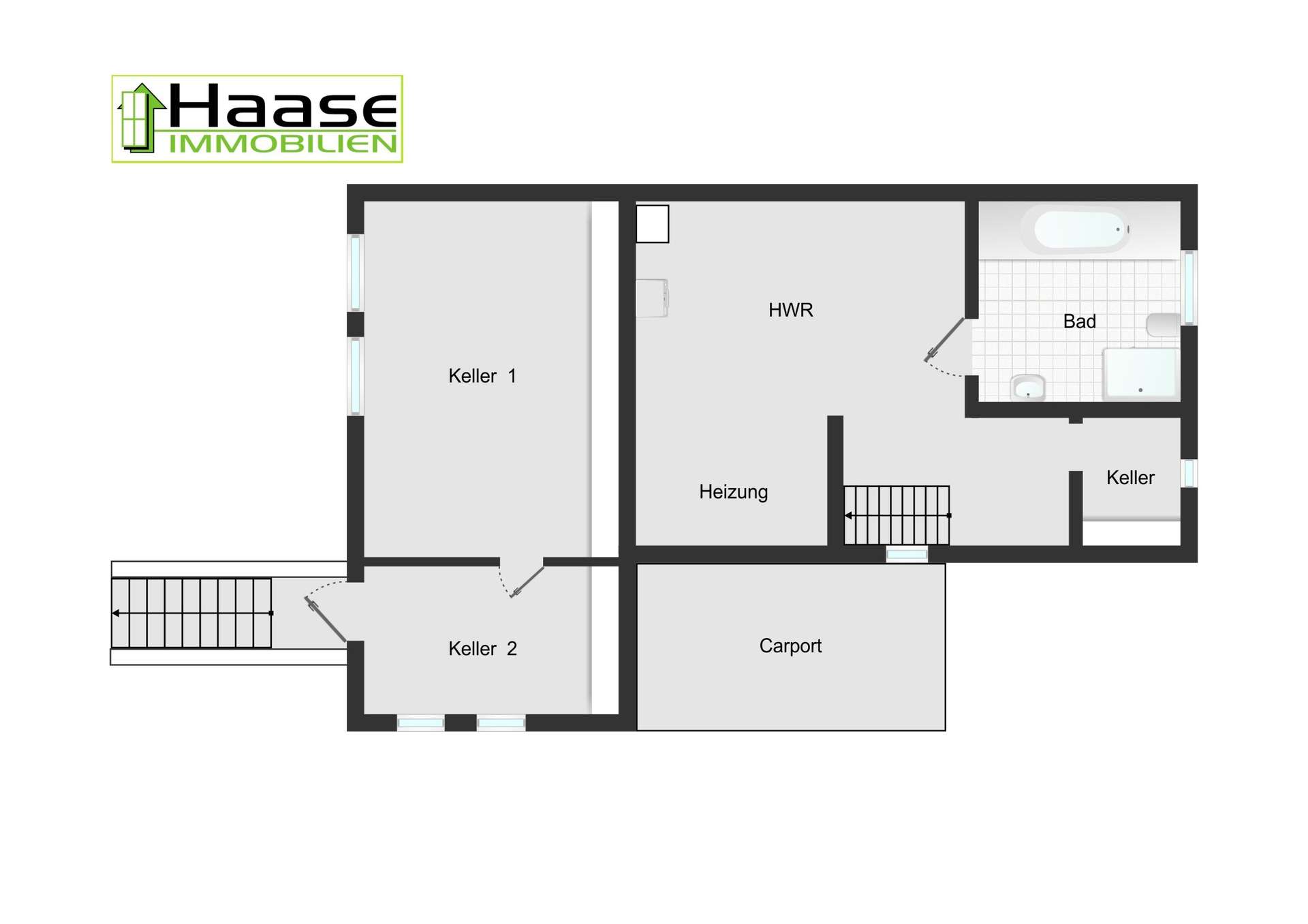 Souterrain: Komplett ausgebautes Untergeschoss mit großen Fenstern und eigenem Eingang. Die Nutzfläche beläuft sich hier auf ca. 30 m² und kann individuell genutzt werden.
