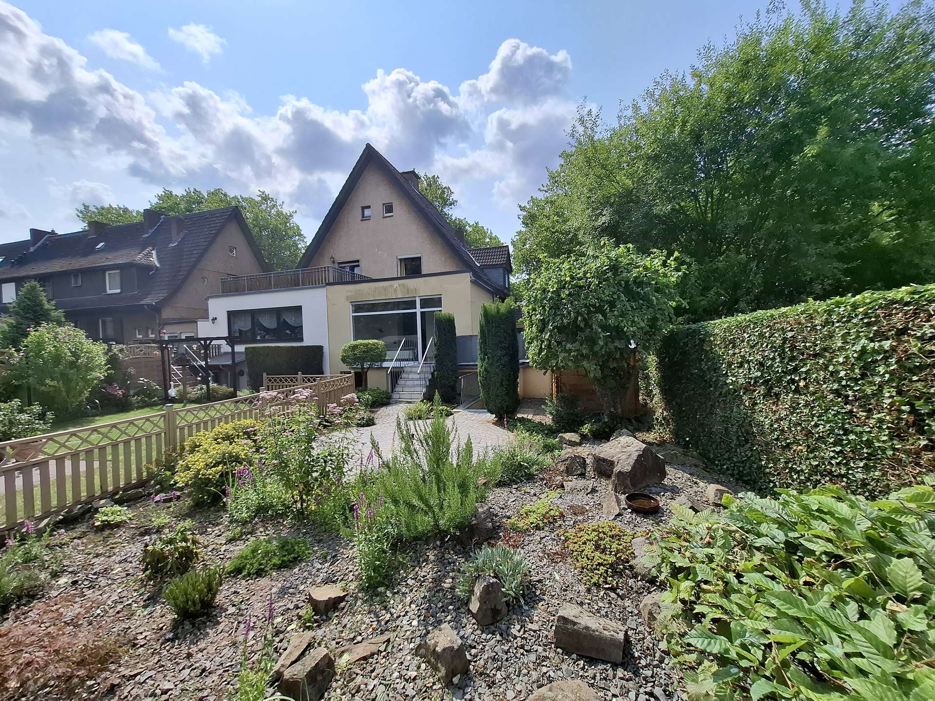 Bei diesem Angebot handelt es sich um eine teilunterkellerte Doppelhaushälfte, Baujahr 1916. Anbau 1999.