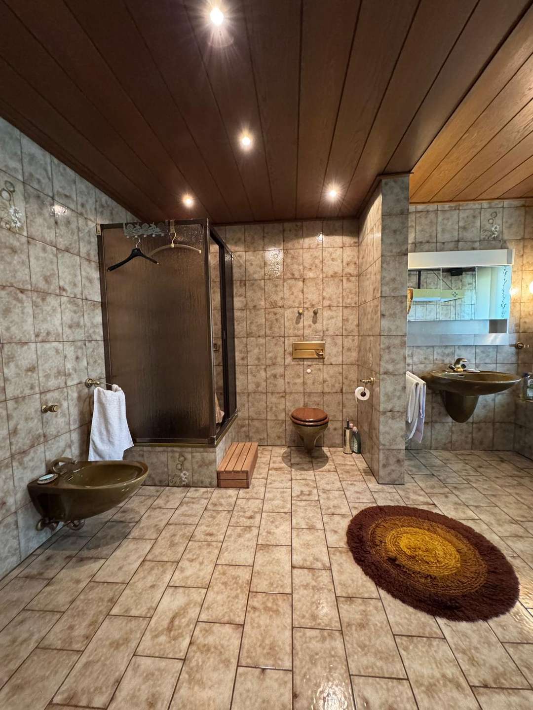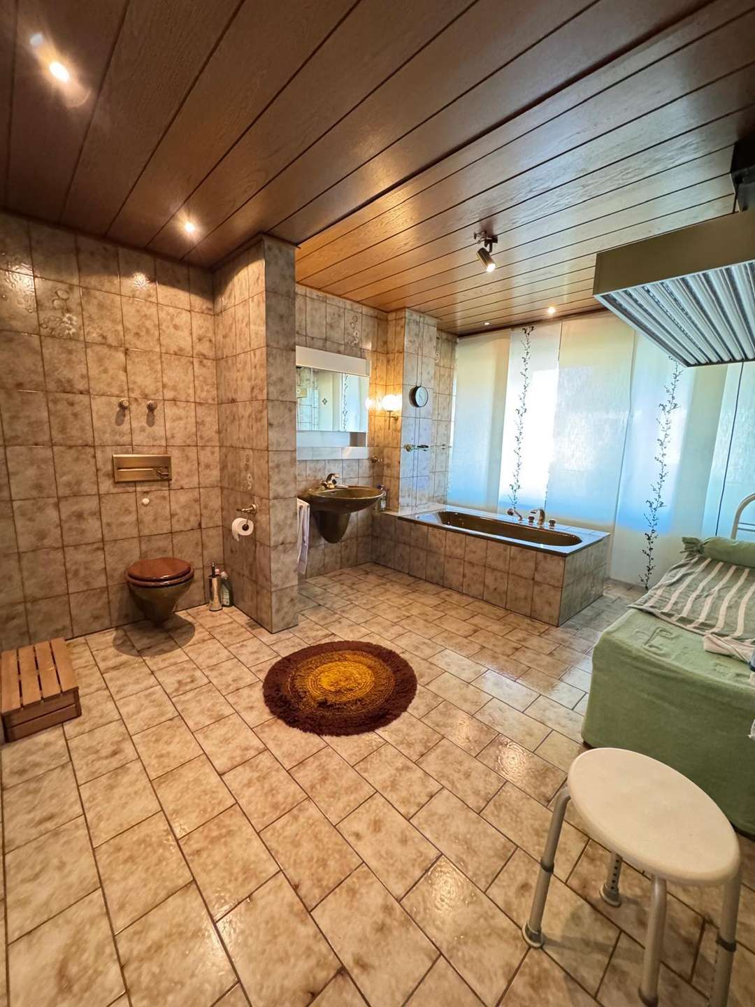 Badezimmer: 1 Badezimmer mit Fenster, Badewanne und Dusche sowie ein Gäste-WC